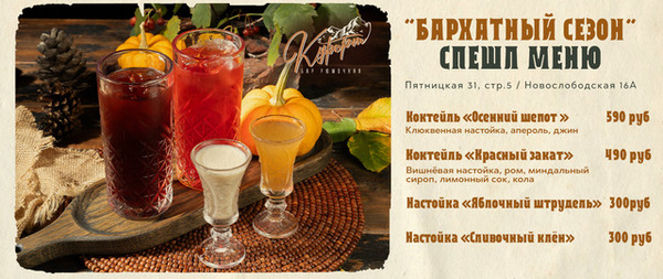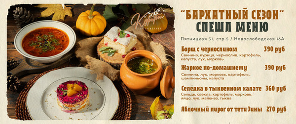 Осеннее спешл меню доступно в «Курортах»на Пятницкой и на Новослободской до наступления холодов.