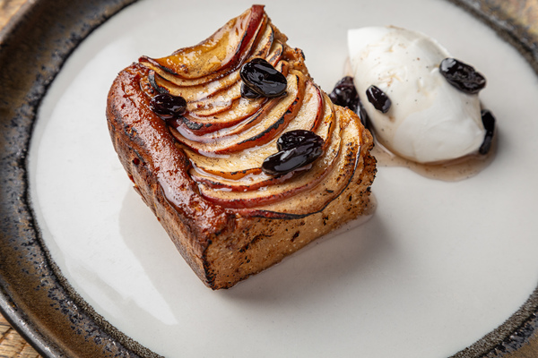 - Запеканка на топлёном твороге c изюмом - 550 руб.: тёплая, густая и сладкая. С чёрным изюмом, варёной сгущёнкой и фермерской сметаной. Пропитанная сиропом из клена и ванили - возвращает к домашнему утру без спешки.