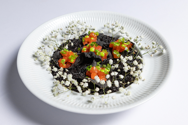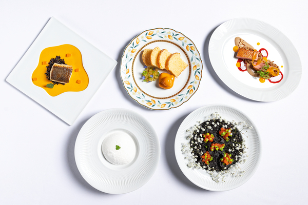 Первым курсом Андрей Жданов предлагает знаменитый паштет из птицы с подмаринованным яблоком и бриошью; вторым курсом - тартар из лосося на хрустящих «раковинах» из риса и каракатицы. На горячее, третьим курсом идет угольная рыба с рисом неро Венеро и соусом из краба, четвертый курс - утиная грудка с гречкой в разных текстурах и апельсиновым маслом. Сет завершает десерт: «ледяной» купол из кокоса с маринованным ананасом и карамельным соусом.