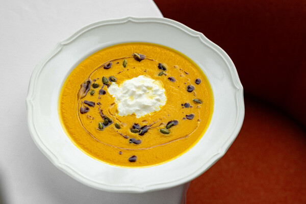 Но не стоит забывать и про классику с южным акцентом, например, Тыквенный суп (790 руб.) или согревающее своим вкусом Орзо со стриплойном и харисой (3600 руб.).