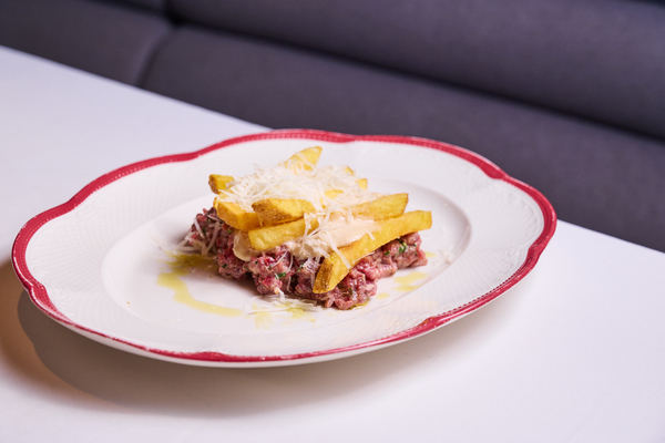 Тартар из говядины с картофелем фри и муссом тоннато — 1 900 руб.;