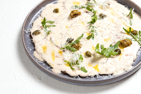 Вителло тоннато (1290 руб.) – хит всех времен и народов, и итальянского, и русского: ломтики ростбифа покрыты соусом на основе тунца и украшены рукколой, стружкой пармезана и оливками. Еще один круглогодичный бестселлер – крем-суп из тыквы с креветками (1290 руб.): приятного оранжевого цвета, с нежной однородной консистенцией, он приготовлен на кокосовом молоке с имбирем и лемонграссом.