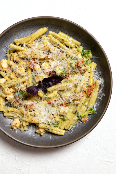 Отличная альтернатива – вишисуаз с бастурмой (1290 руб.): густой картофельно-луковый суп-пюре родом из французской кухни подается в холодном виде с нарезанной соломкой говяжьей бастурмой. Для тех, кто хочет согреться – новинки горячих блюд: например, казаречче с креветками, брокколи и бобами эдамаме (1990 руб). Форма пасты в виде длинных завитков позволяет ей вбирать соус песто по максимуму, а обжаренные креветки с чесноком и тимьяном, бланшированная брокколи и вяленые томаты отлично с ним сочетаются.
