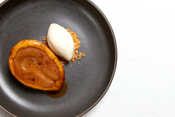 В прохладный день нет ничего лучше, чем оценить мраморность кебаба из говядины с хумусом, соусом сацебели и йогуртом (1390 руб.). Сочный кебаб декорируется миксом зелени и подается с лепешкой роти, подрумяненной на гриле. Кебаб может быть и из креветок и подаваться с полбой: отварная полба готовится с овощами в сливочно-сырном соусе и подается с кебабом из креветок и трески (1390 руб.) До Нового года всего ничего – напоминает крем-брюле с розмарином и мандаринами (920 руб.): нежная текстура под сахаристой корочкой и яркий, почти зимний аромат.