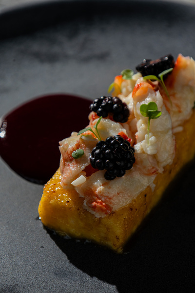 Шеф-повар Алексей Гуров приготовил к фестивалю свою интерпретацию классической поленты — на кокосовом молоке Planto с ежевикой, ежевичным соусом и камчатским крабом.