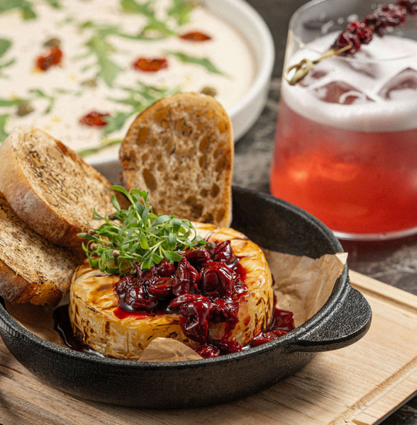 Запечённый камамбер с вишнёвым конфитюром, 1050р