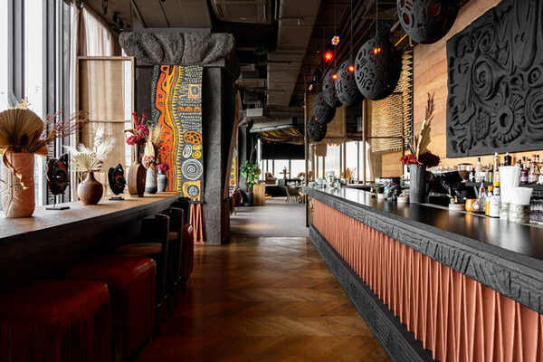 Уникальность Jamaa подчеркивает и история создания его пространства. Он был построен без традиционного дизайн-проекта, атмосфера рождалась в реальном времени через призму живого видения основателя Алексея Васильчука и художницы Натальи Левченко. Этот метод привнес в интерьер особую человеческую, ремесленную энергетику и рукотворность. Натуральные материалы, этнические детали, мягкое освещение и захватывающая дух панорама на вечернюю Москву создают ощущение спокойствия, внутренней гармонии и оторванности от суеты мегаполиса.