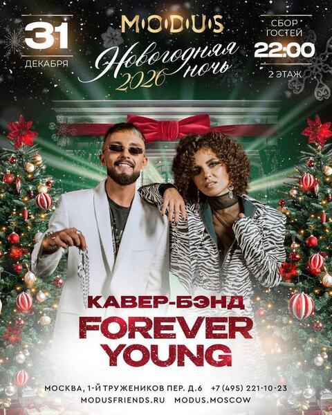 На втором этаже новогоднее настроение создадут ребята из кавер-группы Forever Young — а оно придет моментально вместе со знакомыми с детства хитами. Стильные, драйвовые, позитивные, яркие, раскрепощенные музыканты не дадут возможности просидеть на стуле и пяти минут во время своего выступления. Они действительно знают, что делать с микрофонами и музыкальными инструментами, находясь на сцене, а эмоции от их выступления останутся в памяти надолго.