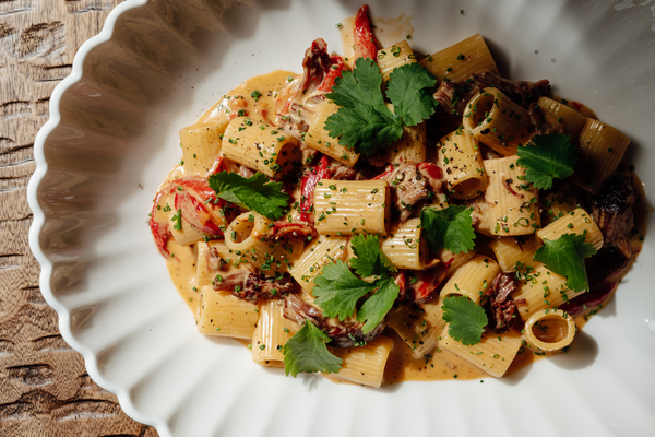 Лепешка с бычьими хвостами и соусом ромеско – 830 руб.