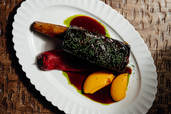 Говяжье ребро «Браай» с кремом батат и запеченным перцем – 5370 руб.