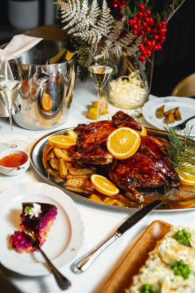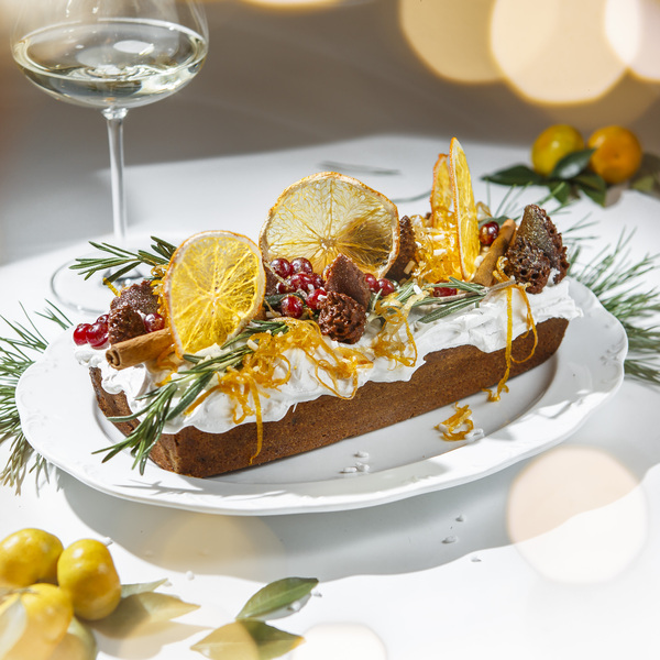 Особый штрих праздничного стола - рождественский кекс от шеф-кондитера Анастасии Ломовой. Несмотря на то что эта выпечка не является исконно российской традицией, она давно стала символом зимних праздников во многих странах. Анастасия создала его в духе домашней классики: без вычурной современности и декоративных изысков - просто вкусный кекс, в котором есть отсылка и к семейным рецептам, и к международной культурной традиции - теплый, уютный, с характером праздника, который не нуждается в украшениях.