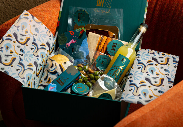 На южном же побережье праздничное настроение получилось поистине итальянским и звонким. В боксе ресторана Юг 22 вы найдете: домашнее Лимончелло, Риет из вяленых томатов с пармезаном, Хамоновое масло, Оливки Чупадедос, Сесину, сыр Манчего, Гриссини с розмарином, Красную икру, а также конфеты с виде лимонов и имбирное печенье.