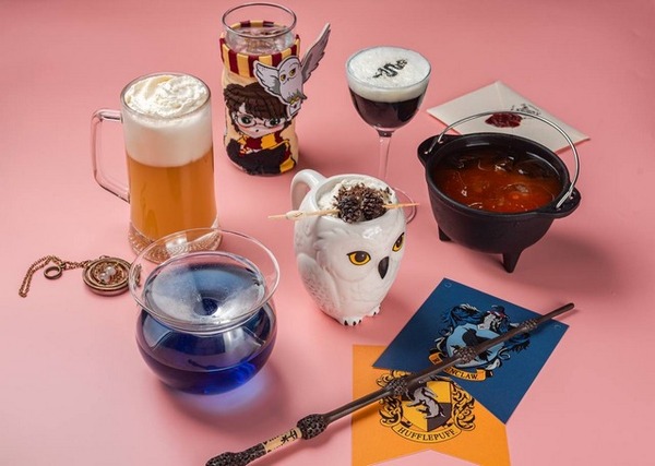 Не обошлось без волшебства и в барной карте. В коктейльном меню — отсылки к ключевым символам мира Гарри Поттера: коктейль «Чёрная метка» идет на бурбоне с шишками, лаймом и малиной, в «Урок зельеварения» добавляют текилу, ананас, содовую и карамель, а подают его в котелке, который шипит от взрывной карамели. «Угощение Хагрида» — ванильное какао с молоком, шишками и шоколадом с оригинальной подачей в кружке в форме совы. «Омут памяти» — виноградный напиток с джином, тархуном и щавелем, а легендарное «Сливочное НЕпиво» сделано на основе из яблока, ананаса, кардамона, корицы, имбиря и сливочного масла. «Добби свободен» мешают с джином и тоником, лаймом, фейхоа и абрикосом.