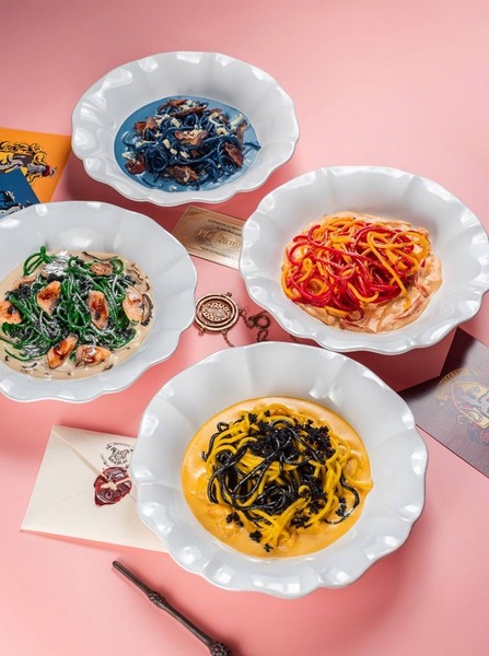 Выбирая пасту, гости могут отдать предпочтение не только вкусу, но и эстетике факультета, так как эта часть спешла вдохновлена четырьмя факультетами: «Гриффиндор» — спагетти с копчёной курицей, куркумой, паприкой, сливочным соусом BBQ и шрирачей, «Слизерин» — спагетти со шпинатом, сливочным соусом с унаги, опалённым лососем и икрой тобико, «Пуффендуй» — спагетти с креветками, куркумой, чёрной матчей, соусом том ям с кокосовым молоком и сливками и икрой тобико, а «Когтевран» — спагетти с горгонзолой, сливочным соусом с синей матчей, а также с карамелизованным говяжьим беконом.