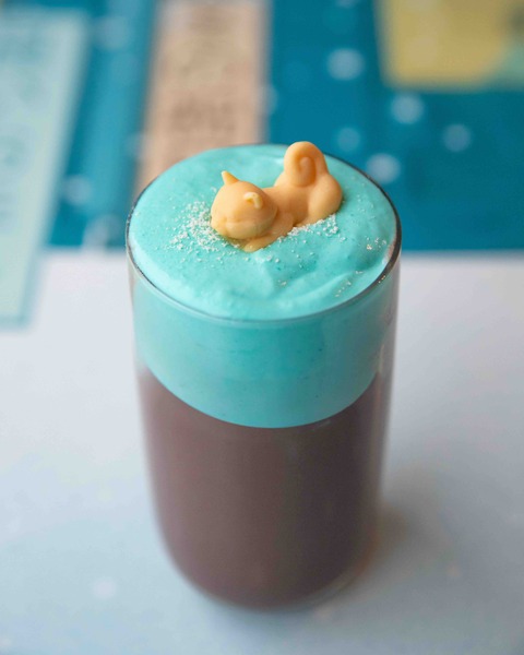 В барном рождественском меню: какао Minty Cocoa (790/850 р.) с мятной пеной и сибой из белого шоколада. Заказать можно как в безалкогольной версии, так и с добавлением рома. А еще команда подготовила праздничные стаканы to go с красочной иллюстрацией – идеальные для прогулки.