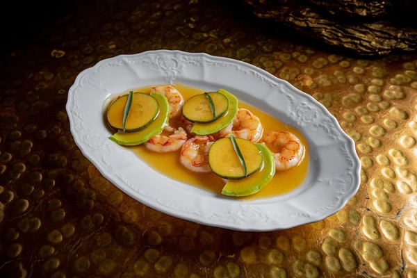 Теплые тигровые креветки с авокадо и фейхоа 950 руб.