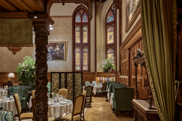 Новый год в особняке на Поварской — событие, которое запоминается надолго. 31 декабря Дубовый зал ресторана «ЦДЛ» наполнится звоном бокалов, живой музыкой и ощущением настоящего торжества. Витражные окна, хрустальная люстра и исторический интерьер создают редкую атмосферу праздника — сдержанную, элегантную и по-настоящему новогоднюю.