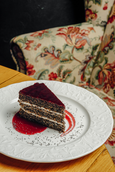 Финальный аккорд — десерты. Нежный «Маковый торт» (890 руб.) или десерт «Матрешка» — уже любимый и узнаваемый, по-праздничному нарядный: клубничное пралине, лимонный мусс, бергамот и джем из розы (1350 руб.).