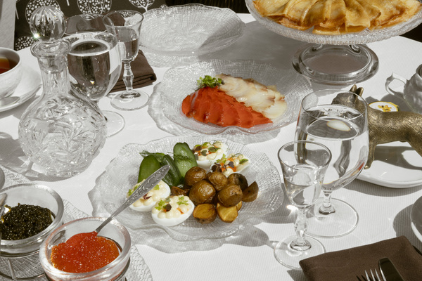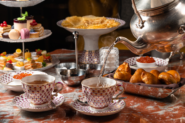 В период праздников и в любой другой день доступна к заказу полюбившаяся чайная церемония (16 000 руб.) — важное продолжение традиций московского гостеприимства. Блины с красной икрой, фирменные пирожки и ватрушки, мини-сэндвичи с лососем и ростбифом, птифуры, конфеты ручной работы, натуральный мармелад и многое другое подают к столу в посуде Императорского фарфорового завода, а чай готовят в старинном серебряном чайнике. Церемония доступна ежедневно с 11:00 до 23:00 по предварительному заказу и рассчитана на 2-4 человека.