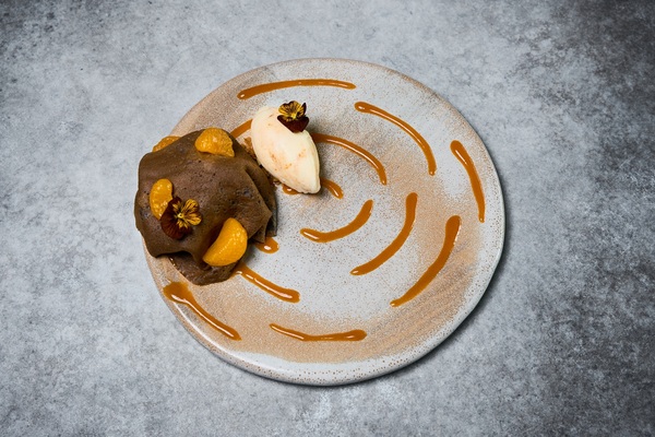 Шоколадный блинчик с кремом "родные просторы" и морковное мороженое, 950 руб.;