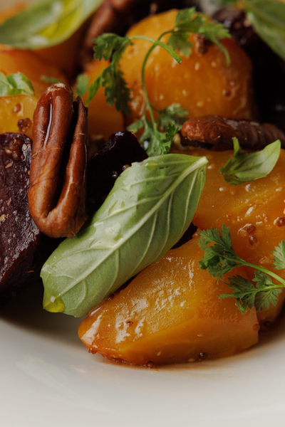 салат из фермерской свеклы с пеканом (1100 руб.),