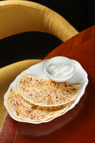 - кутаб с халвой и гранатовым соусом, 550 руб.