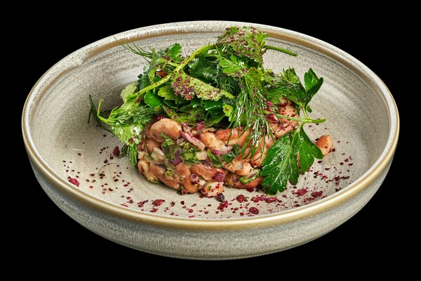 В меню закусок стоит обратить внимание на баклажаны с разными видами аджики (790 руб.), хумус с хрустящими баклажанами (670 руб.), запечённые перцы рамиро с баклажанами по-имеретински (620 руб.) и салат из лобио с овощами и зеленью (550 руб.) или зелёный салат с яблоками (620 руб.). А для любителей классики вариация на салат цезарь, но с грибами (650 руб.). Из выпечки можно попробовать хачапури лодочку с лобиани и соленьями (530 руб.) и хачапури с грибами и картофелем (550 руб.). Хинкали в этом году готовят с начинкой из картофеля и грибов с добавлением пряных специй (110 руб.).