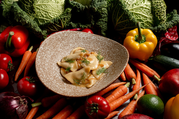 Основные позиции меню – паста казаречче с грибами и шпинатом (1200 руб.) с белыми грибами, вешенками и трюфельным соусом; стейк из капусты с трюфельным соусом (650 руб.) с добавлением трюфеля и соуса понзу, со слайсами свежего трюфеля и зелёным маслом; и вареники с картофелем, грибами и жареным луком (790 руб.).