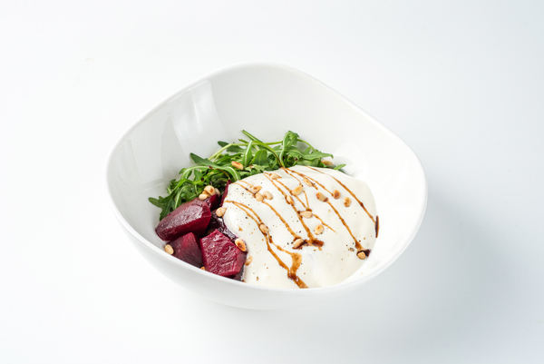 Салат с копченой свеклой и рукколой с муссом пармезан — 790 руб.;